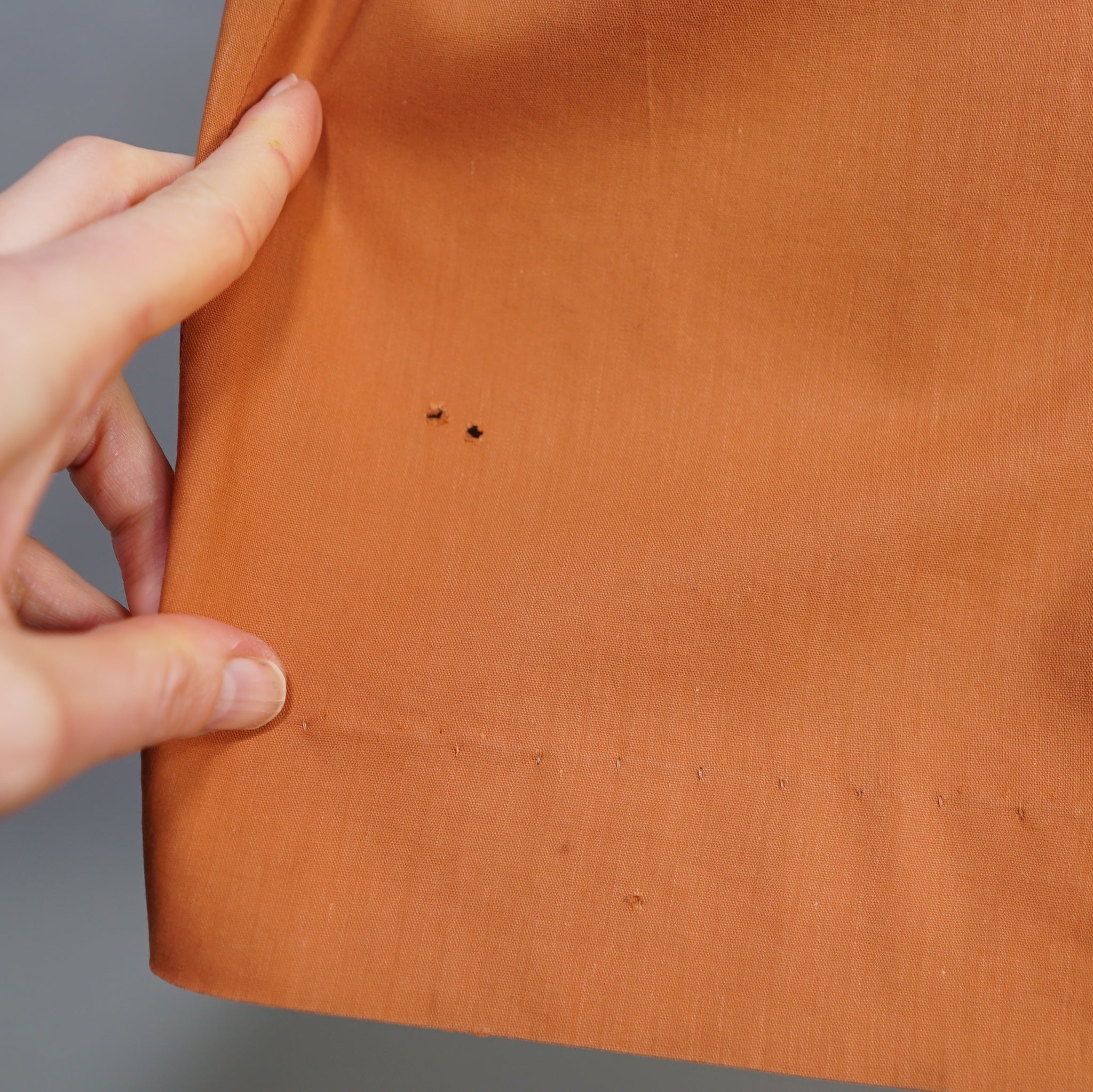 -Two small holes and one small worn spot to the skirt, see photos. One very faint slightly lighter spot on the bodice.