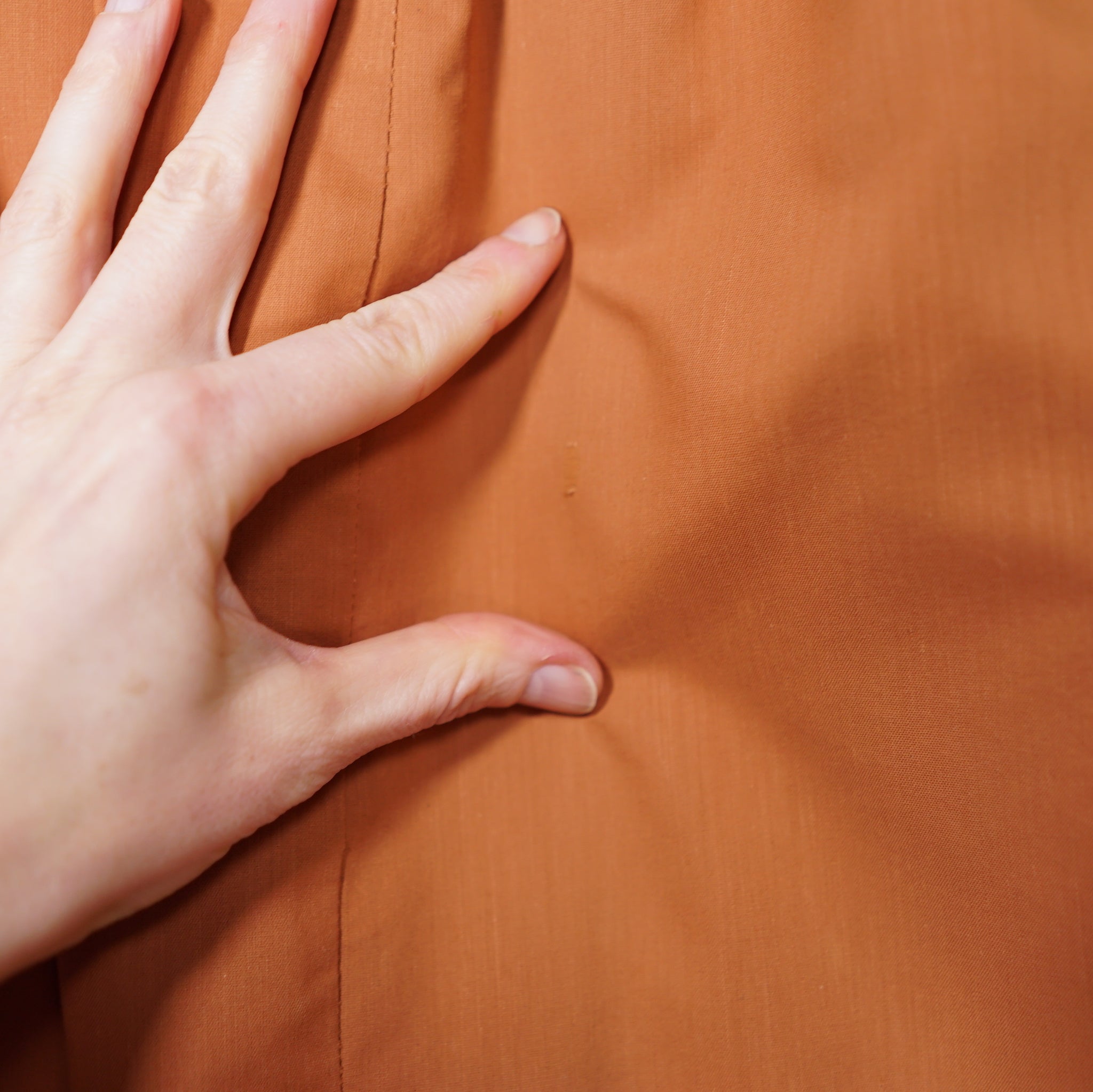 -This has had the darts taken in at some point and restored back out again. It also looks like the arm holes have been altered. They are finished, very neatly with bias binding.