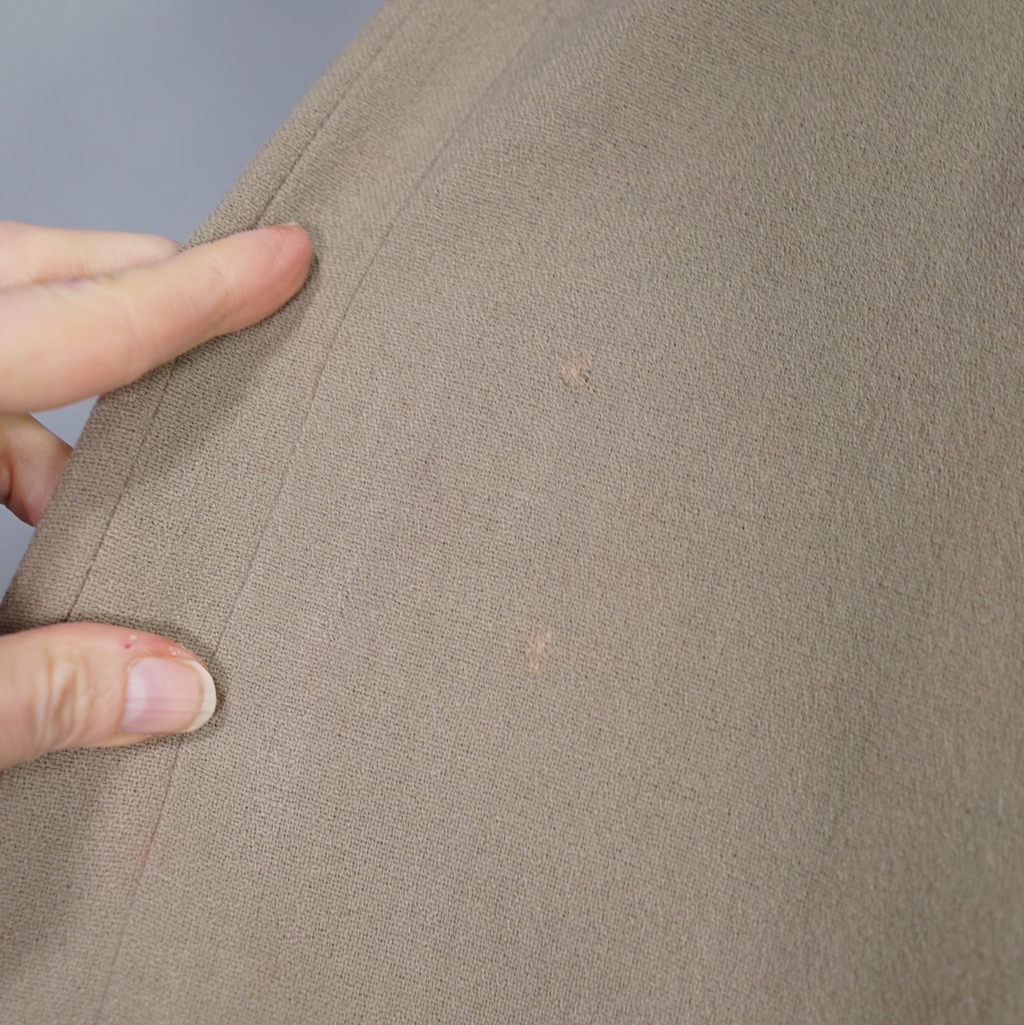 -Three tiny darns to the skirt, due to the fullness this won't be noticeable when worn, one tiny pen tip darn under arm and one just above the waistband. See photos. Slight repair to top of zip. Belt backing is made from really fine soft leather, which has cracked and broken a bit around the button holes, see photos.