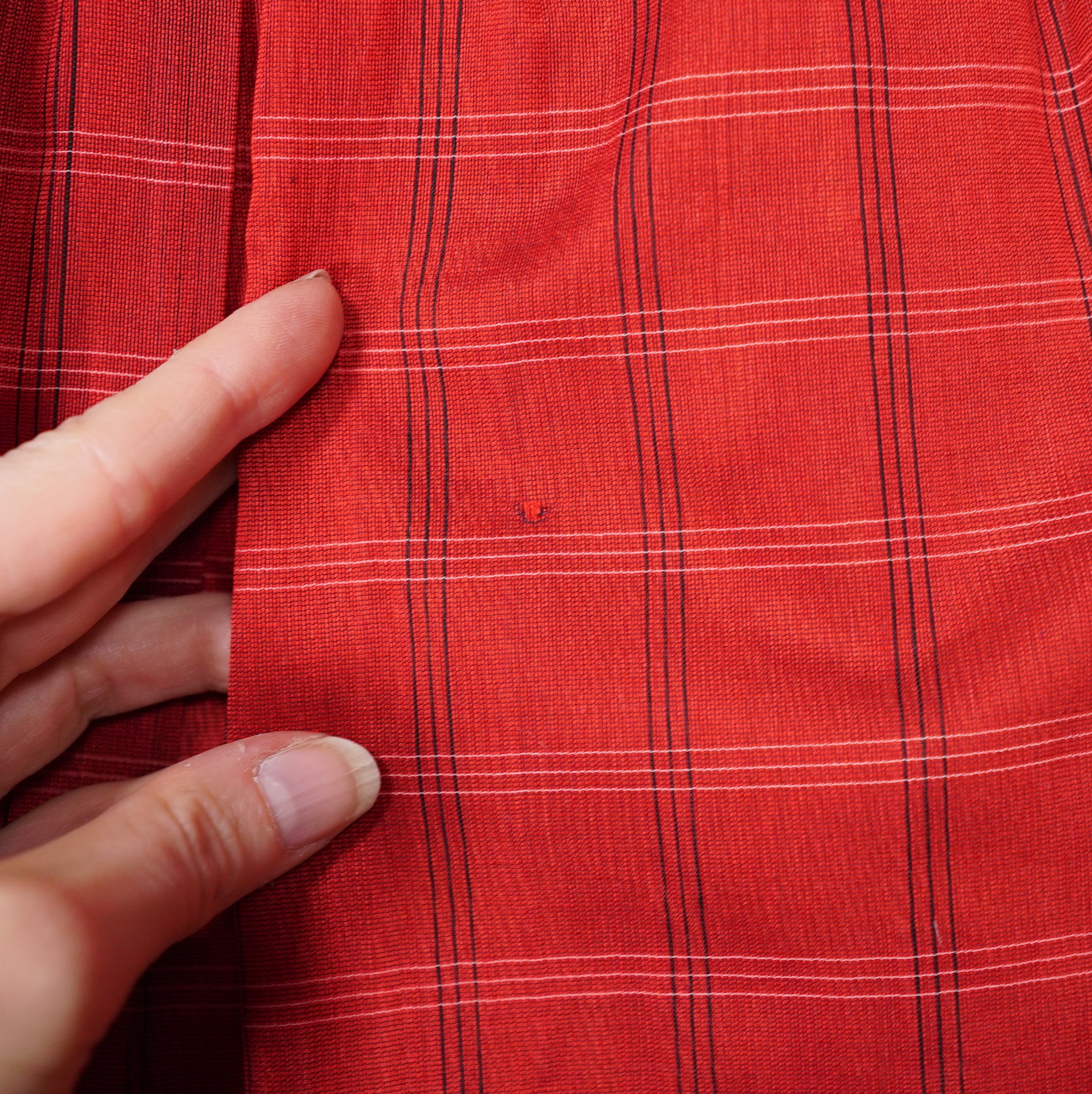 Good condition. A couple of small scuffs and a very faint mark to the skirt, see last photos. The red lining has been cut and finished with a pretty neatly zigzagged edged, but this can't be seen when worn, so doesn't detract.