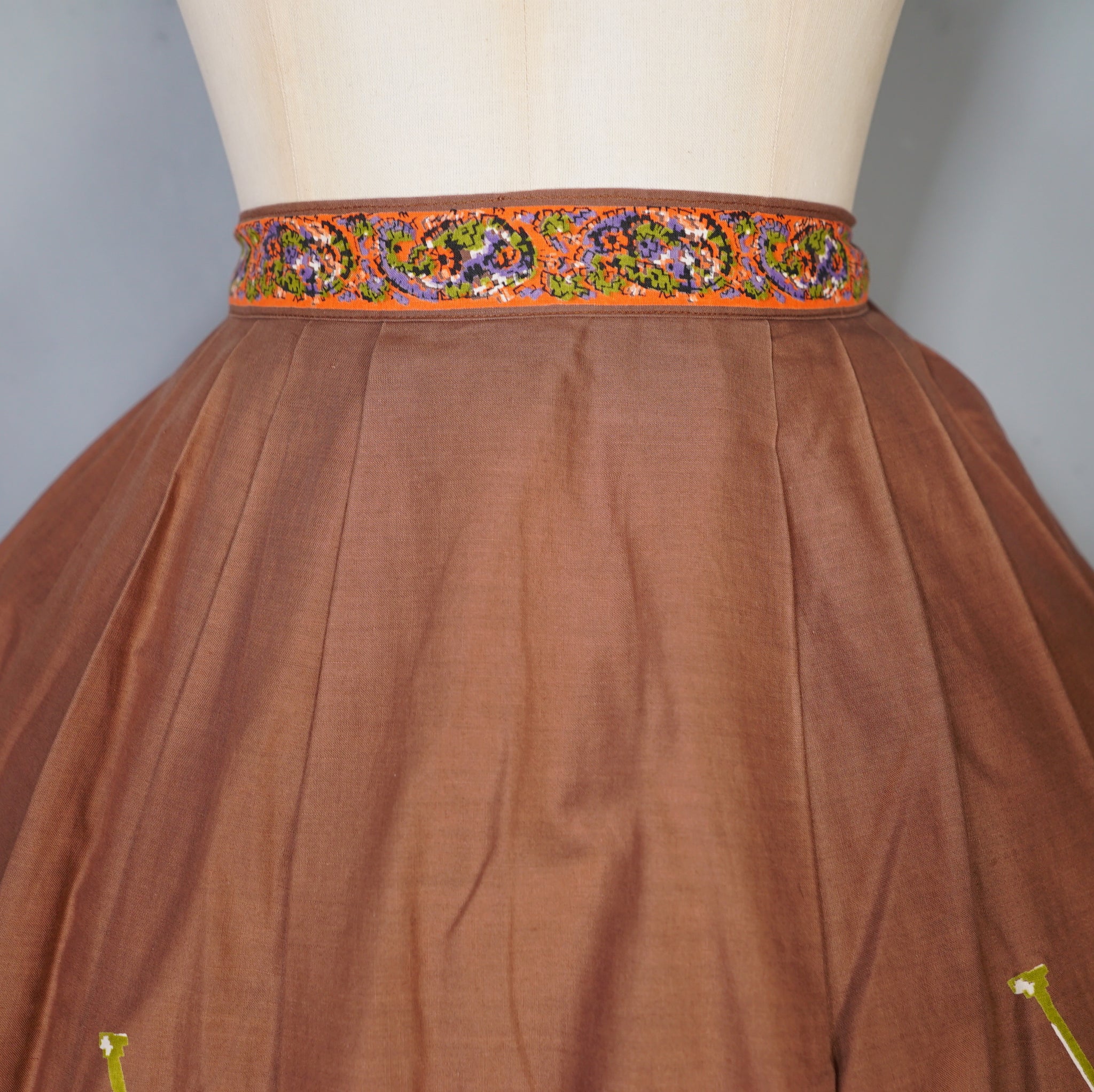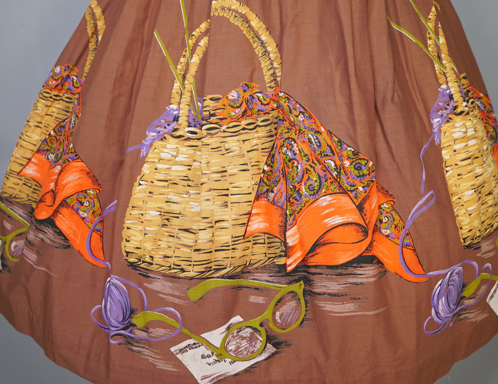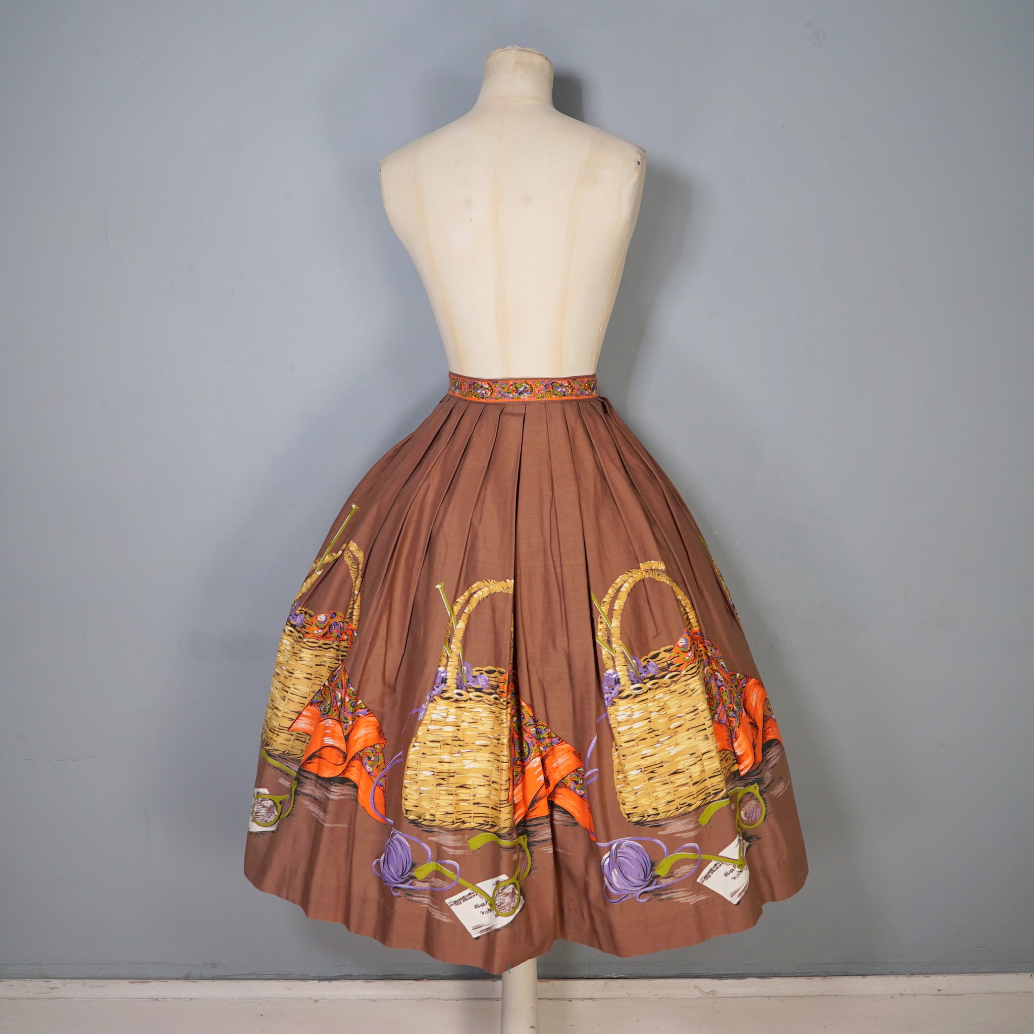 50s JOHN WOLF NOVELTY BORDER PRINT KNITTING BASKET FULL COTTON SKIRT - 27"