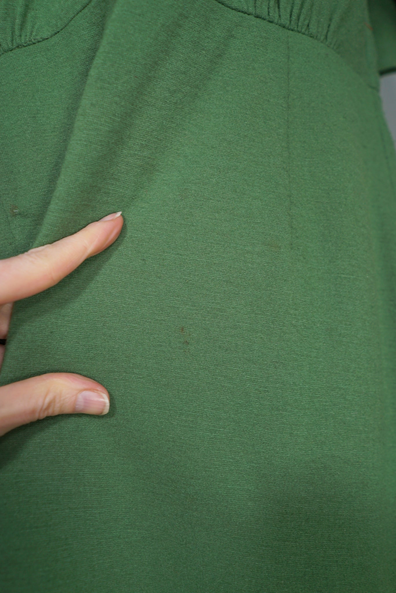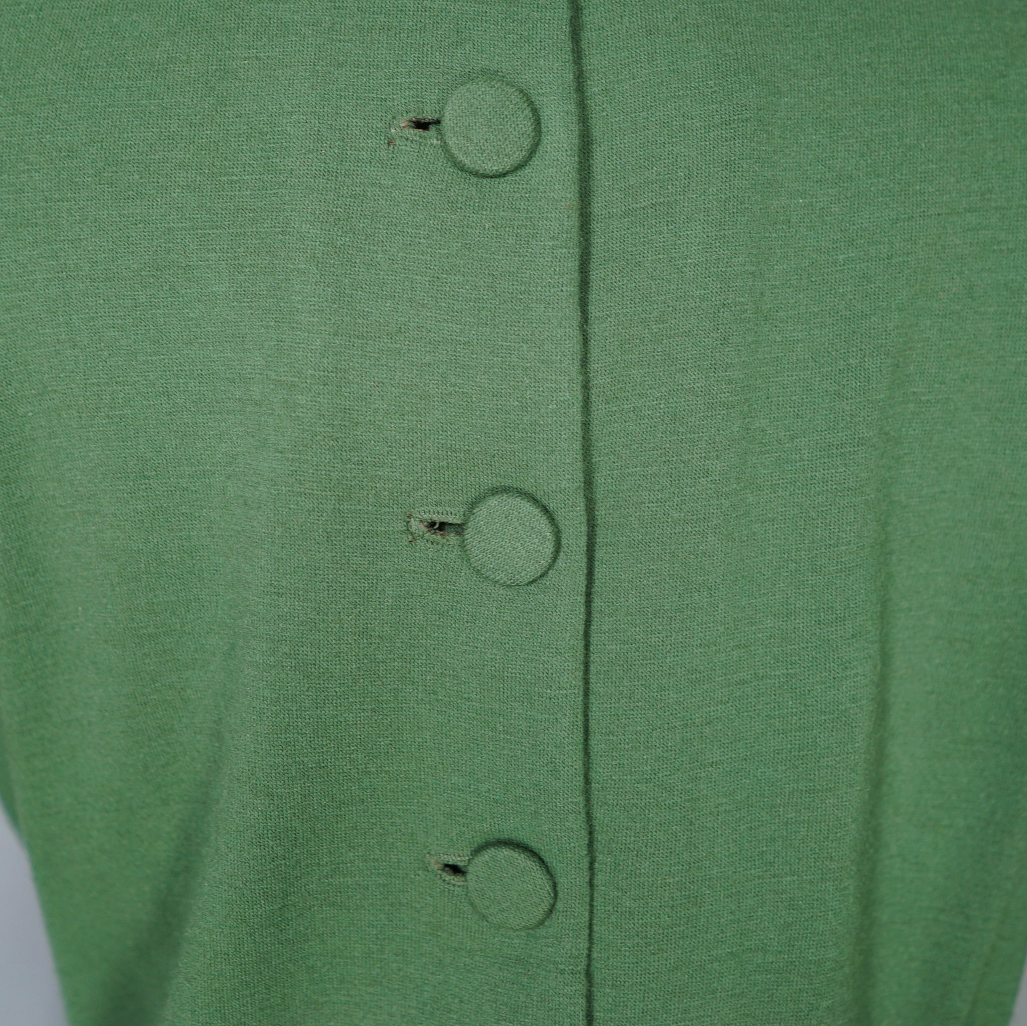 Good condition. A little  it of very minor pilling. Two tiny darns and a couple of pin holes on the lower skirt, only really noticeable when held to the light.