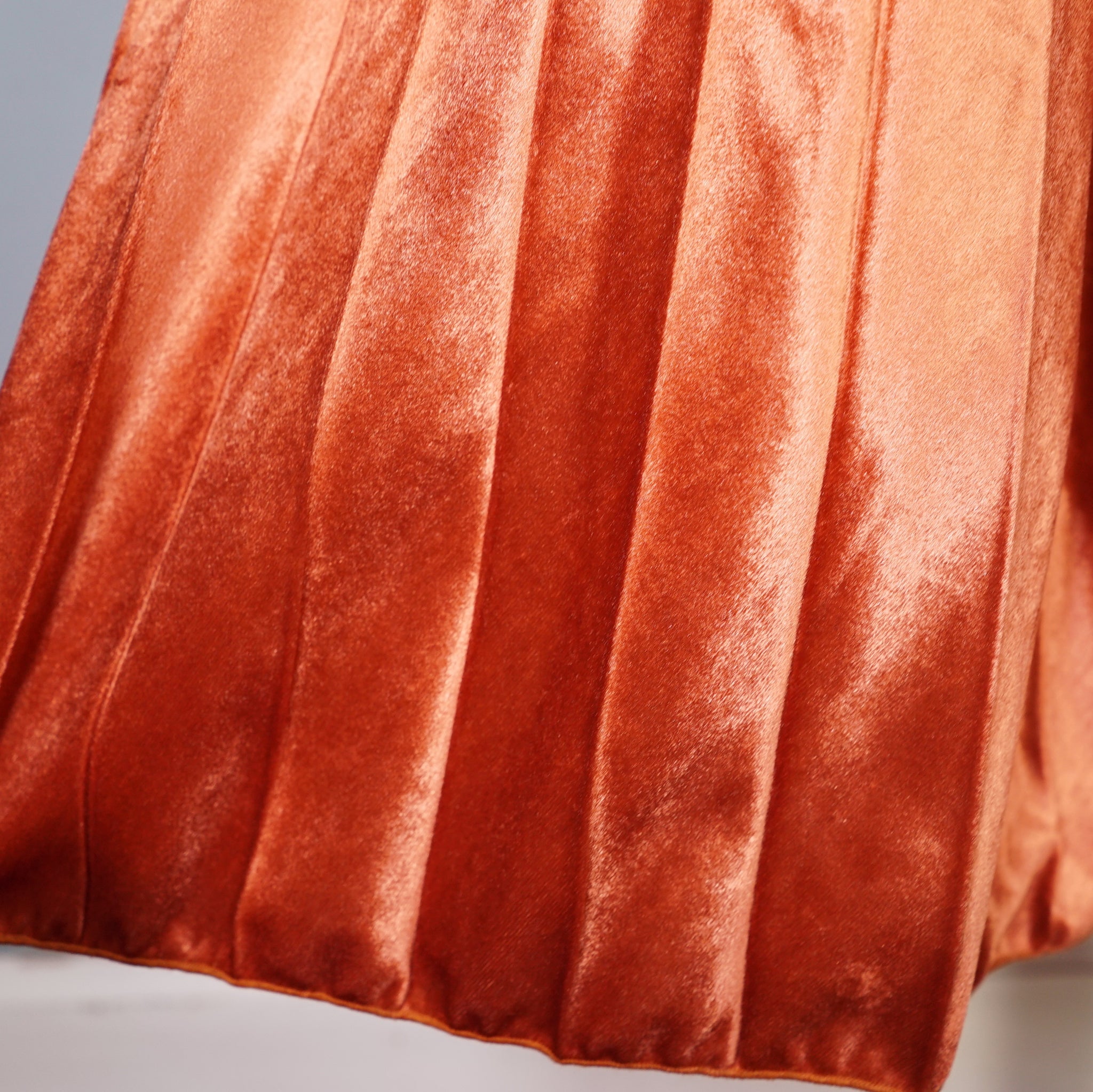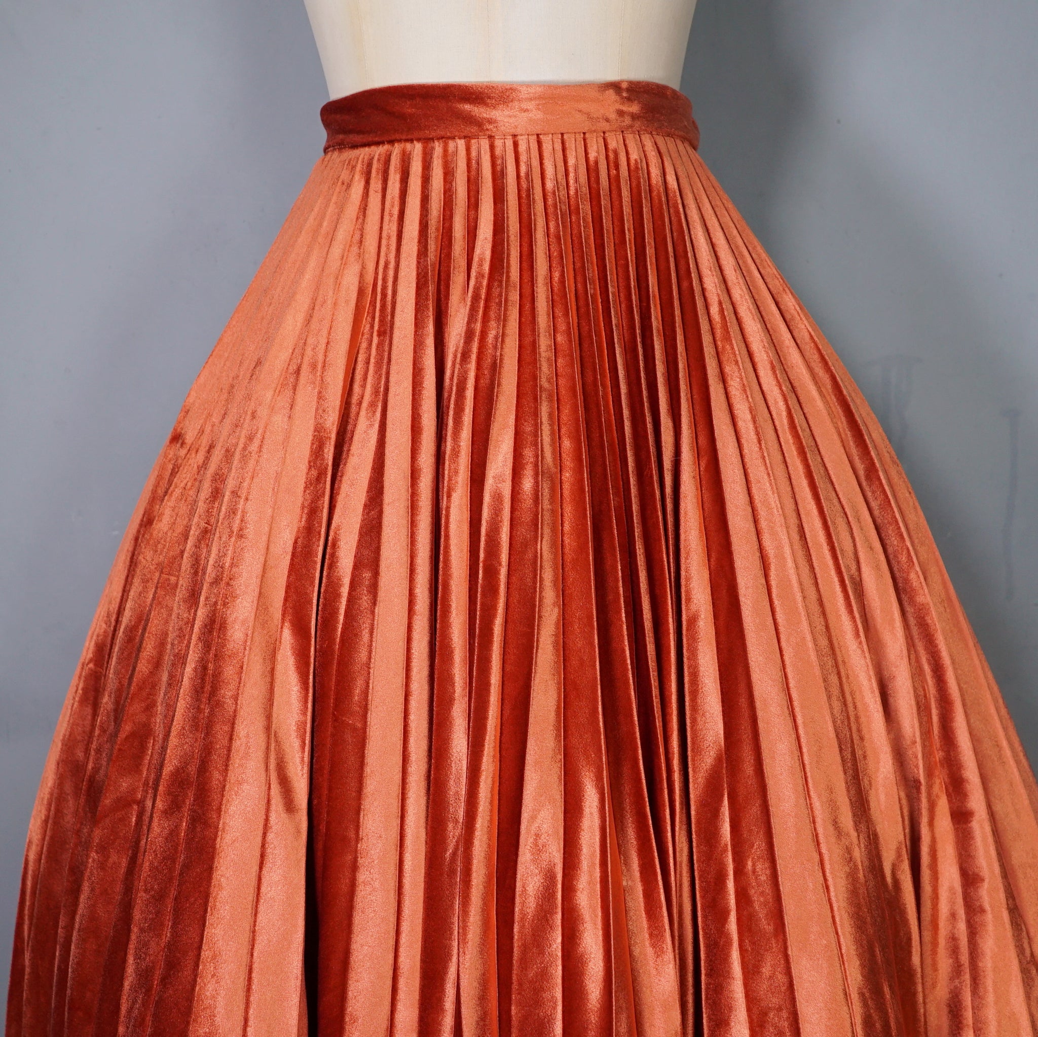 70s CRAIGMERE FULL CIRCLE PLEATED PUMPKIN ORANGE VELOUR SKIRT - 25"